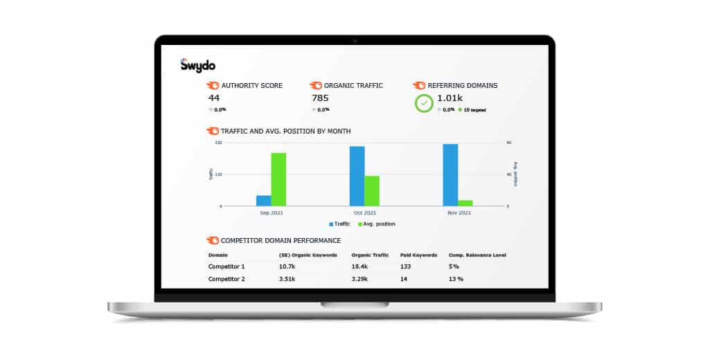Hilversum, The Netherlands – December 9, 2021. Swydo, a global leader for custom digital marketing reports, dashboards and data visualizations, today announced a new integration with Semrush, a leading online visibility management platform. The integration enables Swydo customers to combine SEO and competitive analysis data from Semrush with other third party marketing data into one comprehensive report making it easier to uncover insights that lead to improved marketing performance.